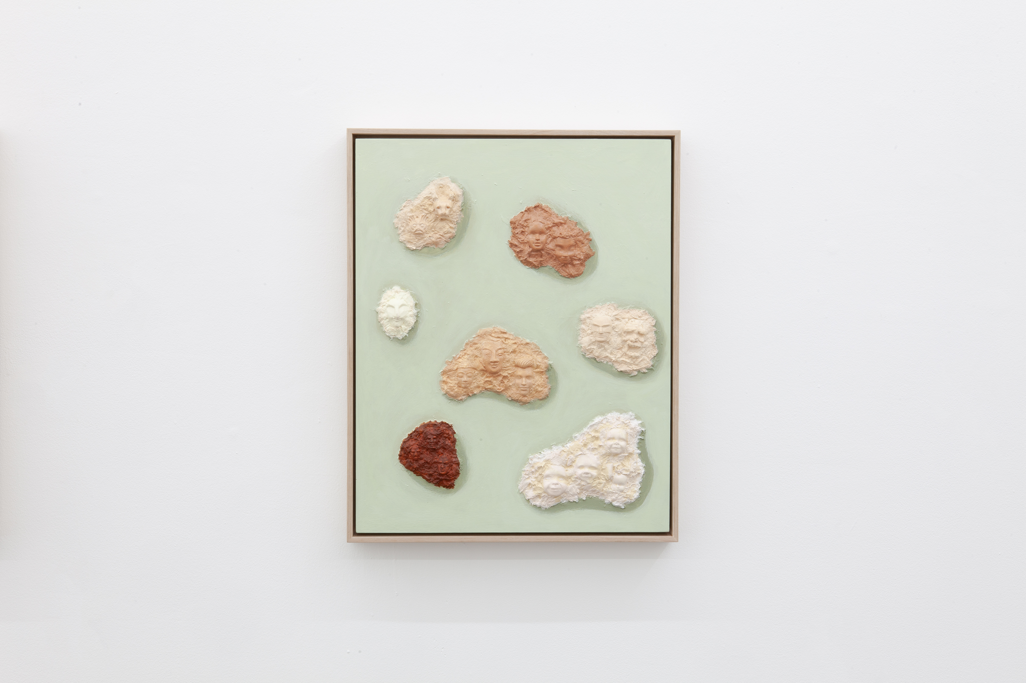 One by One 2025 Oil, cellulose, adhesive, desiccant, beads on wood panel